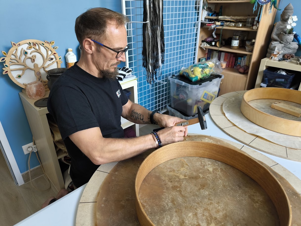 Créer son tambour est un acte sacré réalisé dans un espace sacré, accompagné de rituels chamaniques qui vont à la fois vous amener dans votre intériorité et à la fois vous amener dans une relation intime avec votre animal.
