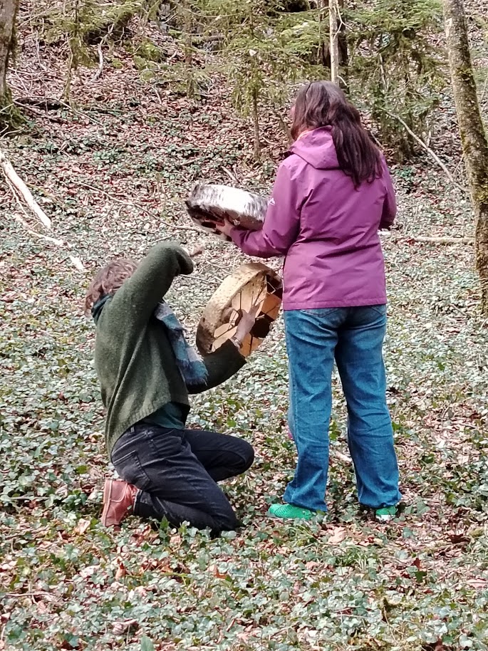 Les ateliers de Naissance de Tambour se passe à Reynel, où je vous reçois dans mon espace. La nature avec la forêt et la rivière est à portée de main, nous y passons d’ailleurs un certain temps.