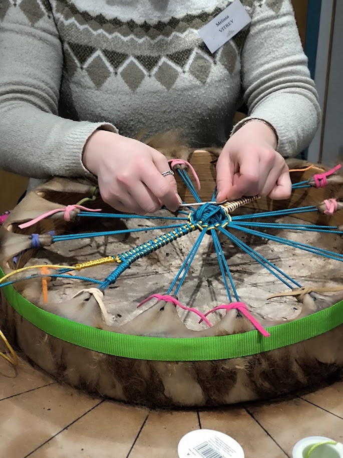 C’est dans cet espace que je dépose un Merci à ceux qui m’ont transmis directement ou indirectement la voie du tambour, Jean-Pierre Lévêque, élève de Robert Pierre Dugenetay, avec qui j’ai débuté l’aventure, Robert Pierre Dugenetay, qui a eu deux grands enseignants Emaho Homme médecine Navajo et Dhyani Ywahoo femme médecine cherokee, Sylvie Di Scala, qui m’a inspiré la voie du tissage.